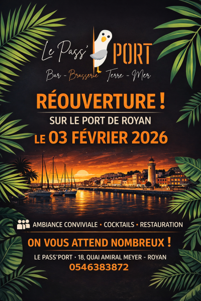 Places limitées, pensez a réserver au 05.46.38.38.72 ou par mail au : lepassportroyan@orange.fr